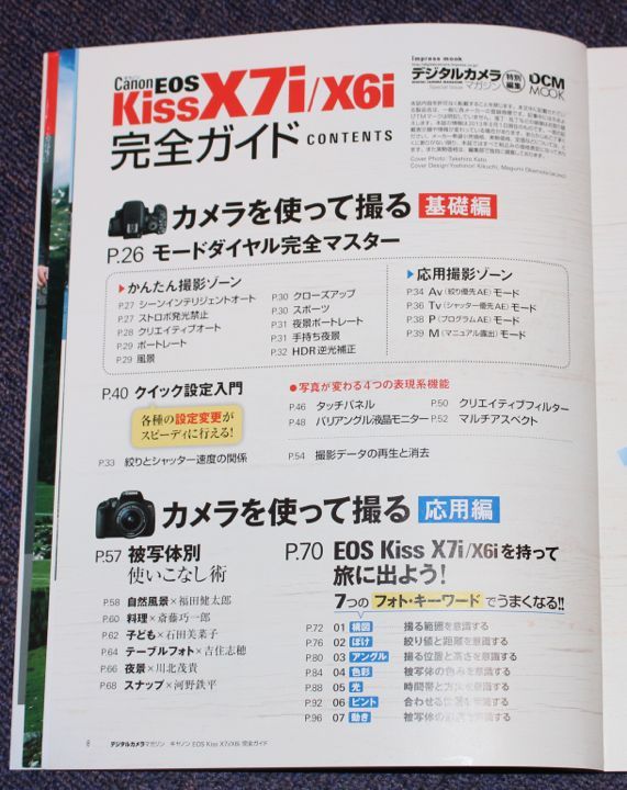 キャノンのデジタル一眼レフカメラ EOS Kiss X7i/X6i のガイド(マニュアル)です。全体的な構成がとてもよくできていてわかりやすいです。