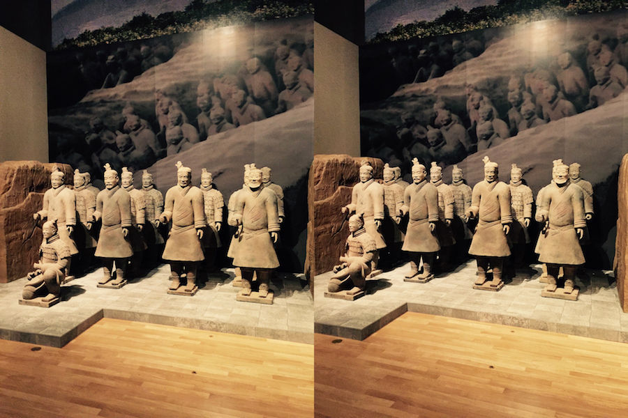 約70体の精巧な複製で再現した兵馬俑坑が第2会場の最後にはあり、ここだけは写真撮影ができます。展覧会の思い出にこのような記念撮影コーナーがあるととてもよいです。ほかの展覧会でも撮影コーナーを是非用意してほしいものです。