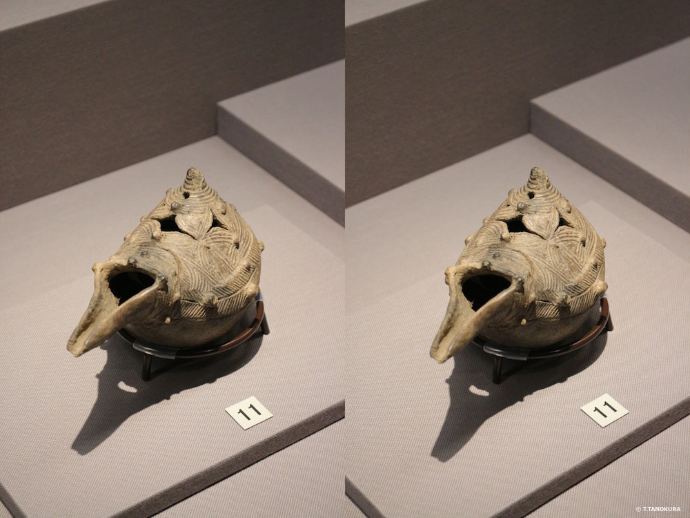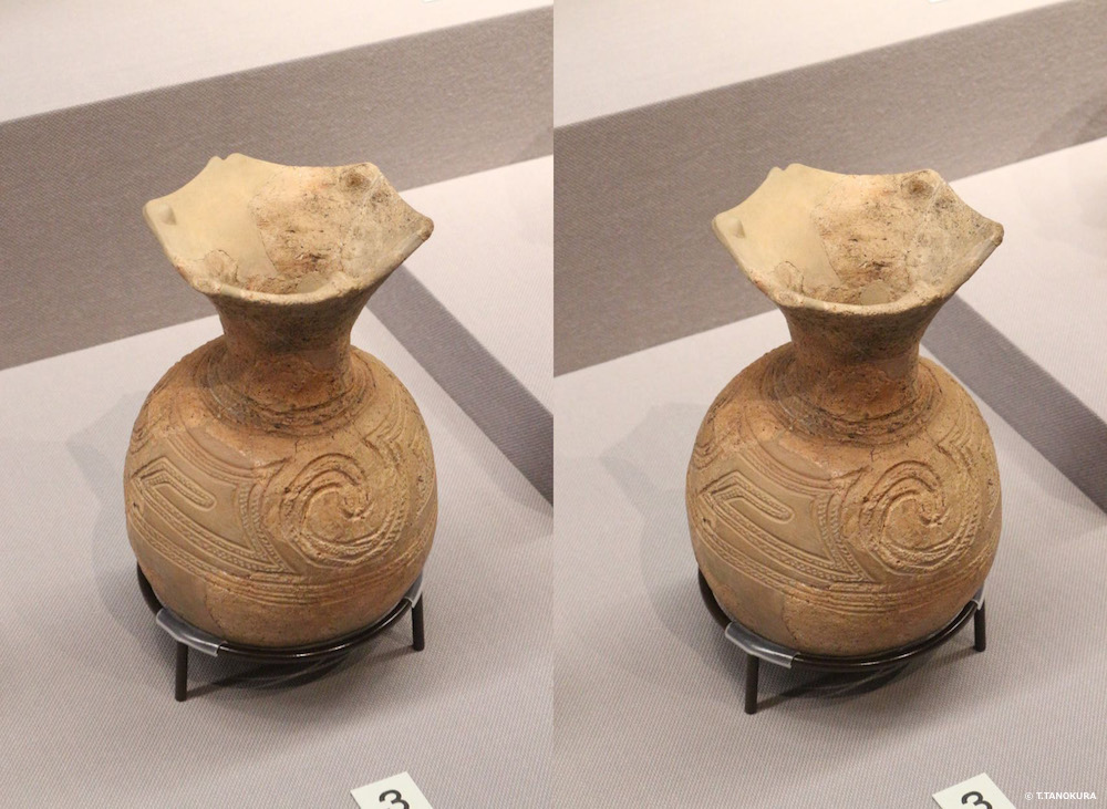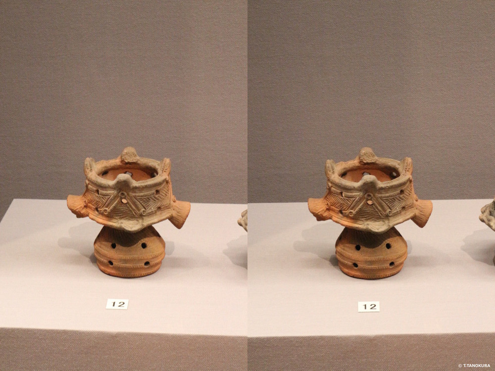 東京国立博物館・平成館の考古展示室がリニューアルされました。展示も一新され、また展示ケースのガラスの反射・写り込みがほとんどなくなり展示品がとても見やすくなりました。下の写真は展示品の一部です。交差法(注1)で立体視ができます。