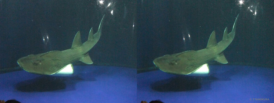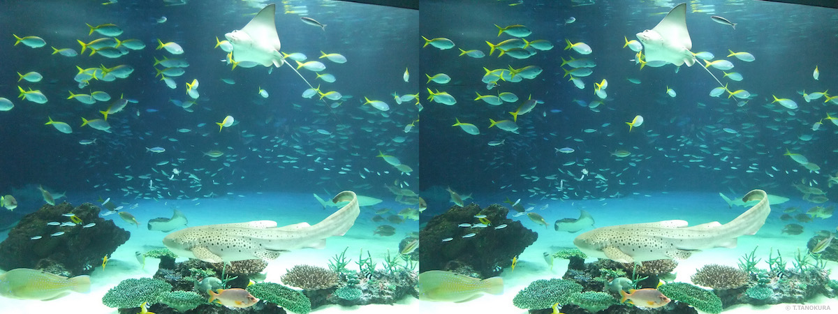 下の写真はいずれも交差法で立体視ができます。東京・池袋にあるサンシャイン水族館(注)で撮影しました。