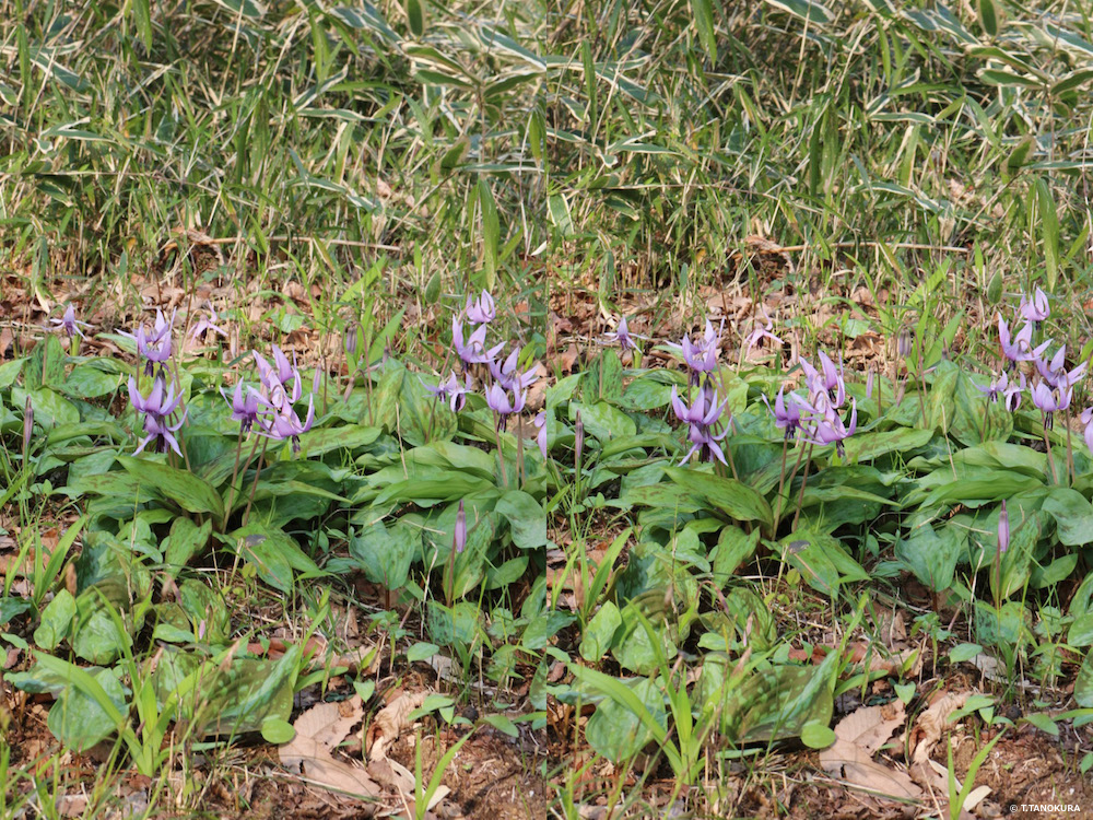 サクラが開花宣言される頃がカタクリの花の盛りです。片栗粉はこの球根から昔はつくられました。自生地では北斜面にこのんで生育します。シュンラン