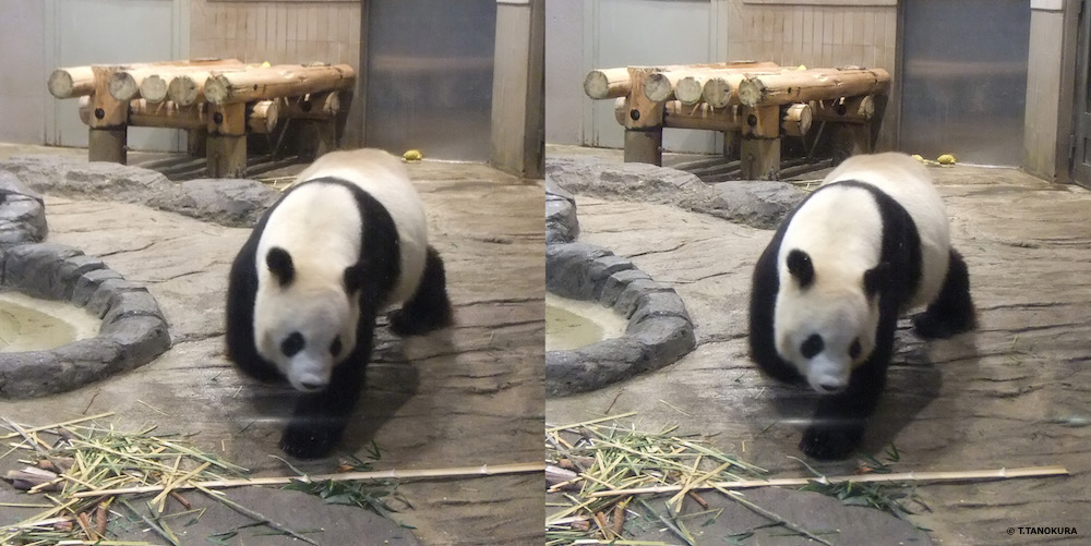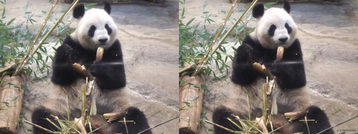 "シンシン"(タケノコを食べている。交差法で立体視ができます)