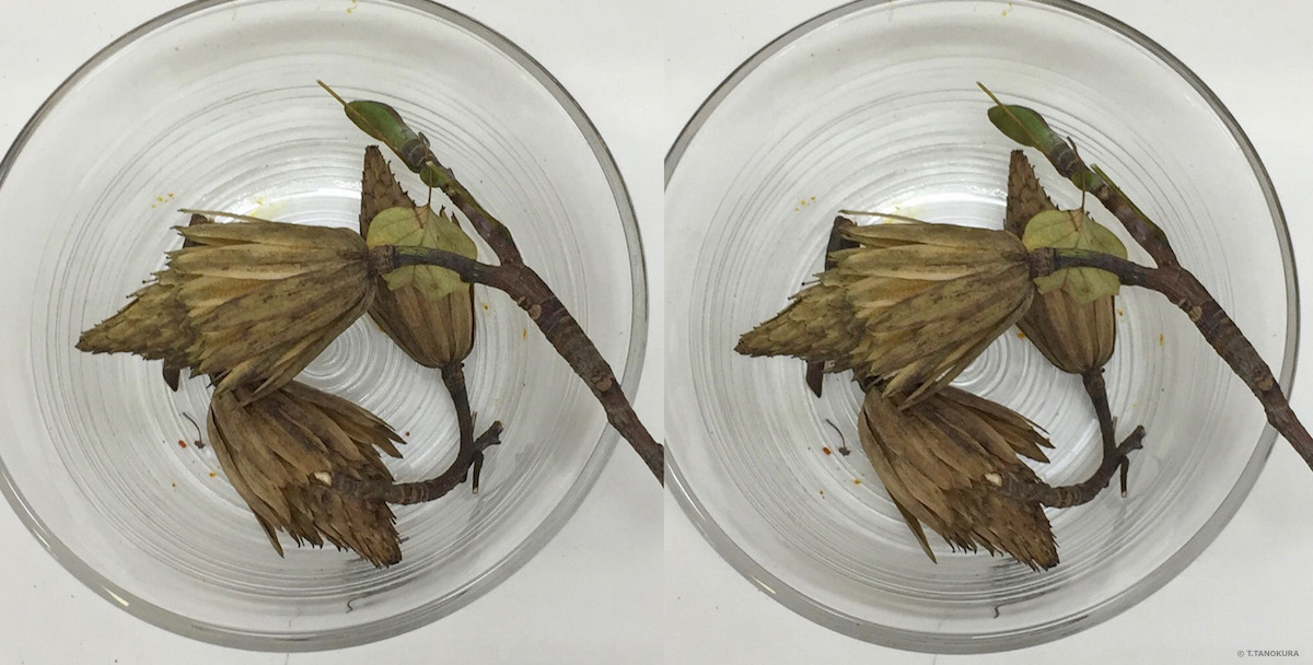 写真はいずれも交差法で立体視ができます。会場で撮影しました。