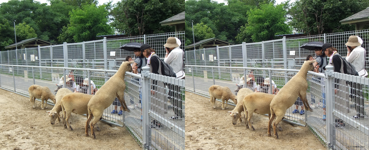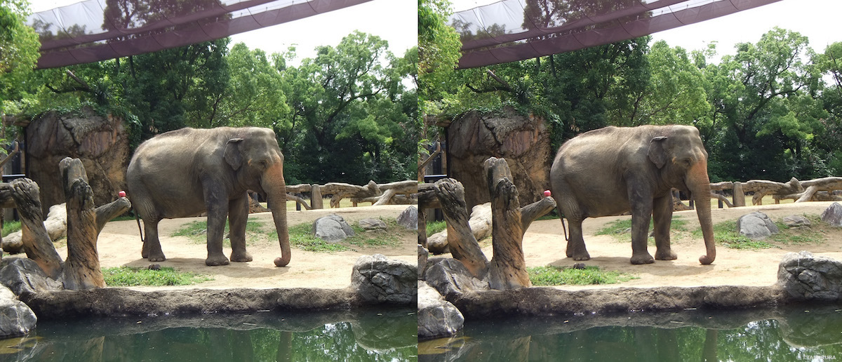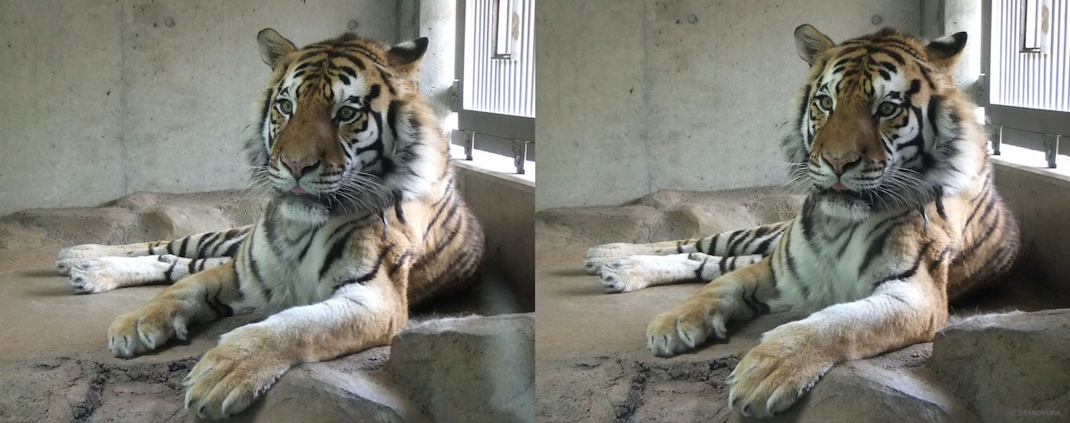 写真は、天王寺動物園(大阪市)で撮影しました(注1)。いずれも交差法で立体視ができます。