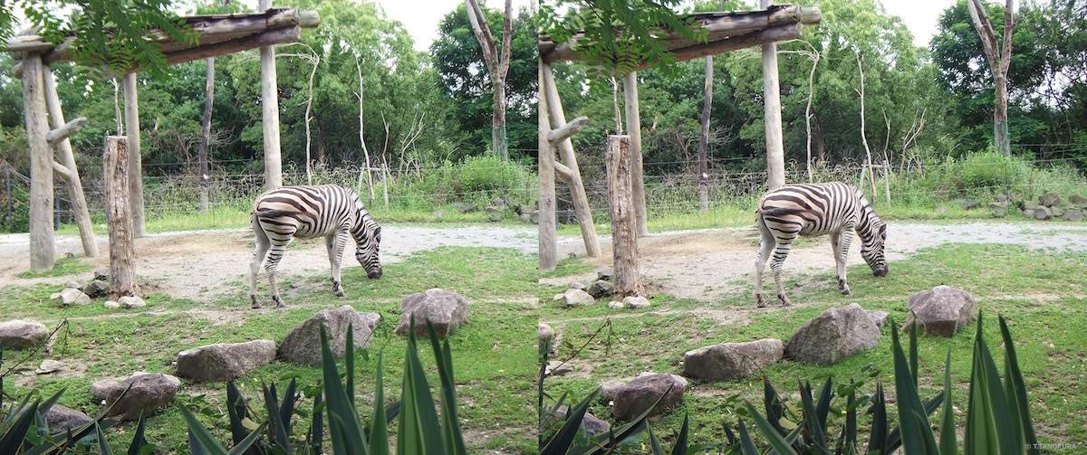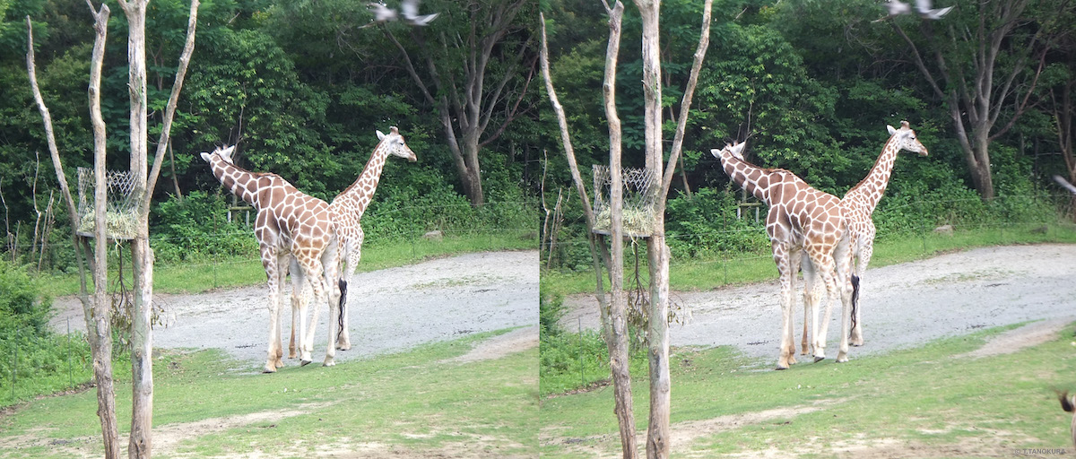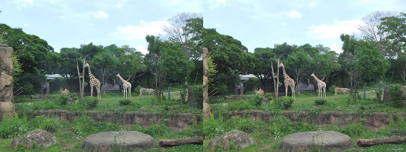 写真は、天王寺動物園(大阪市)で撮影しました。いずれも交差法で立体視ができます。