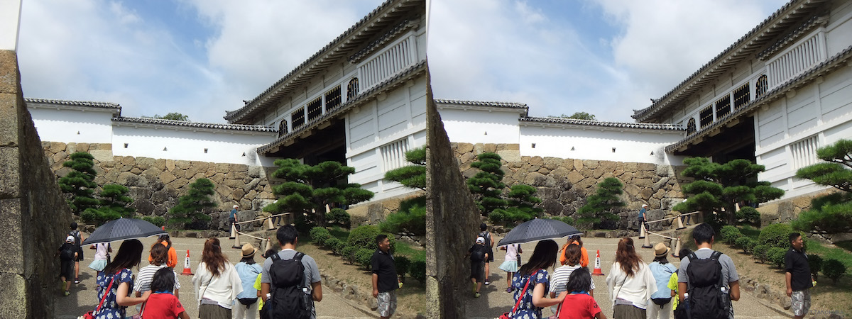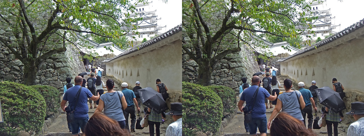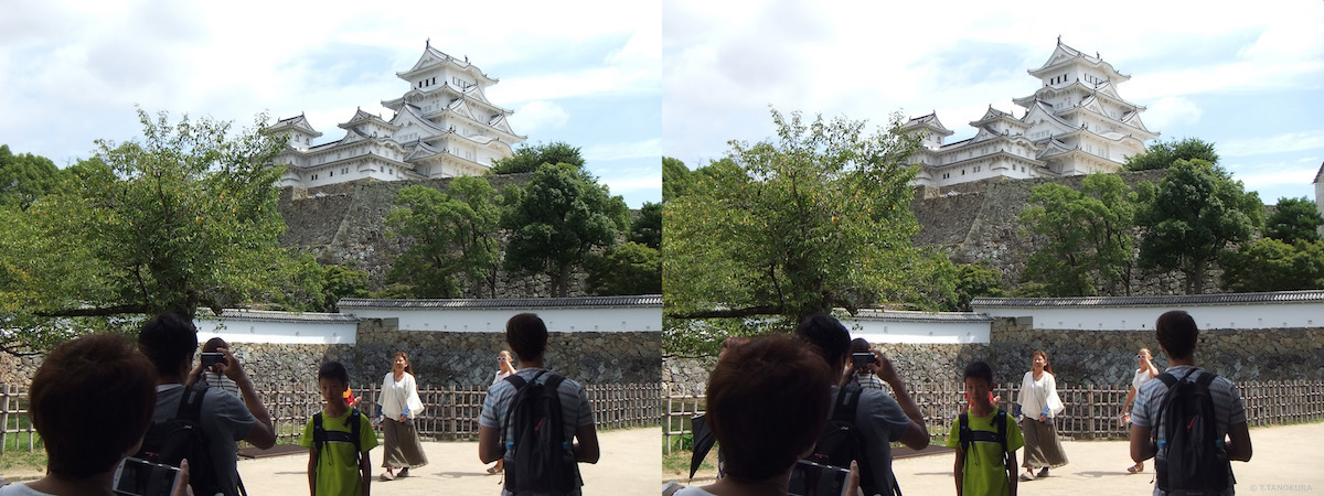 いずれも写真は姫路城です。交差法で立体視ができます。