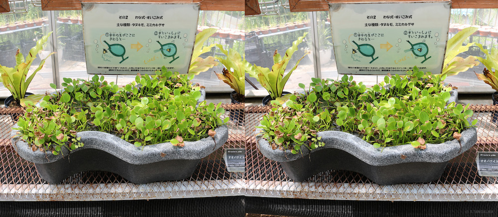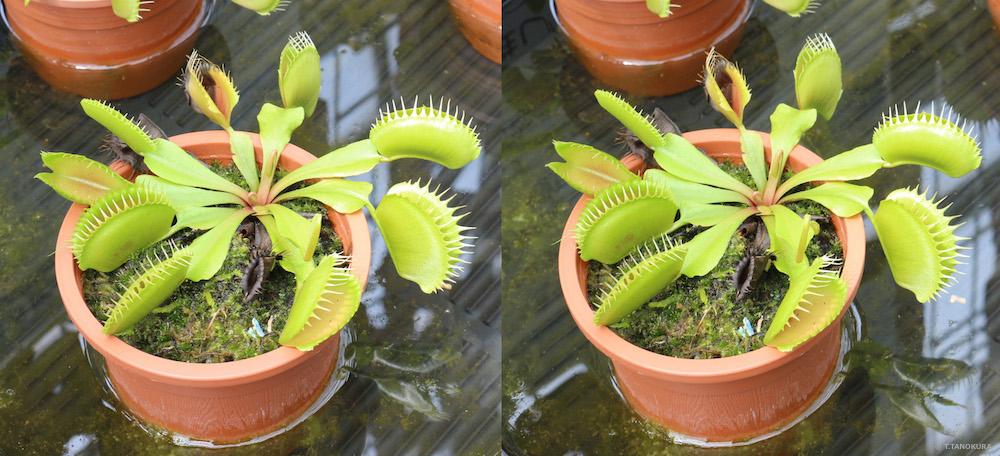 ステレオ写真はいずれも平行法で立体視ができます。姫路市手柄山温室植物園(注)で撮影しました。