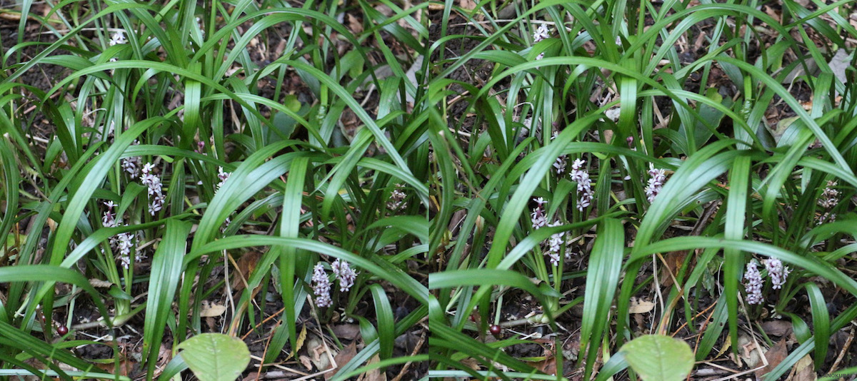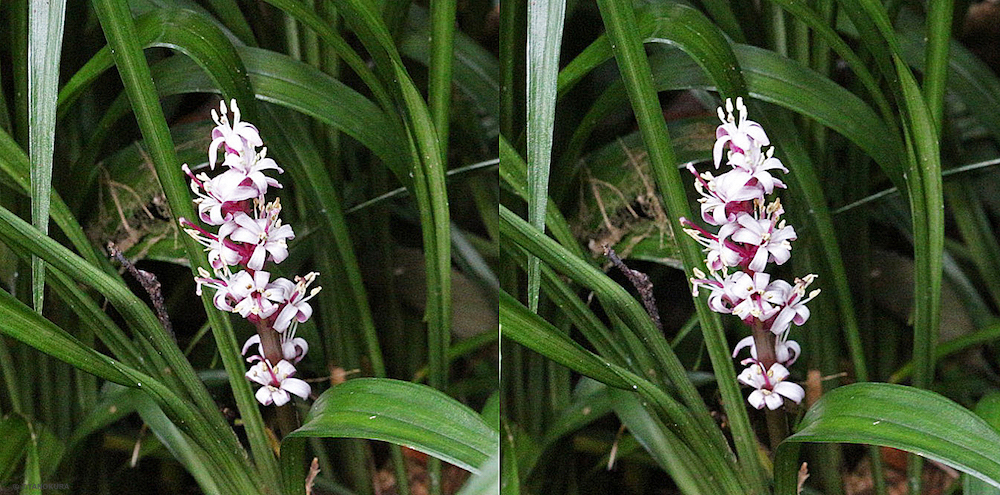 ステレオ写真はいずれもキチジョウソウ(吉祥草)、交差法で立体視ができます。国立科学博物館附属自然教育園で撮影しました。