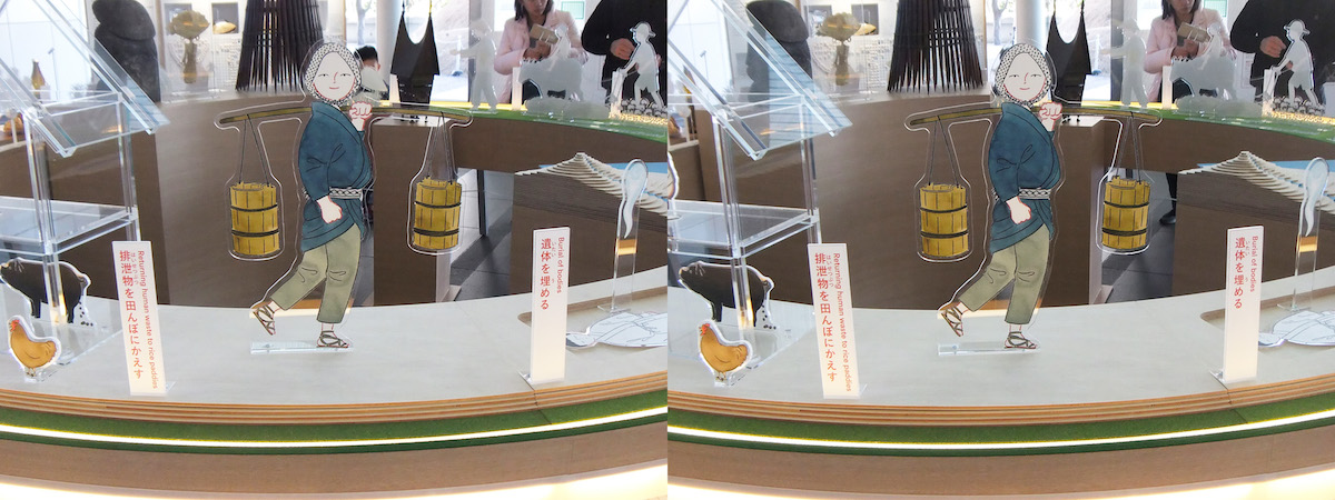 今回の展示のメッセージは循環システムの方です。 伝統的な水田稲作は循環のモデルとしてすぐれており、循環型の世界をつくっていくための参考になるにちがいありません(注2)。