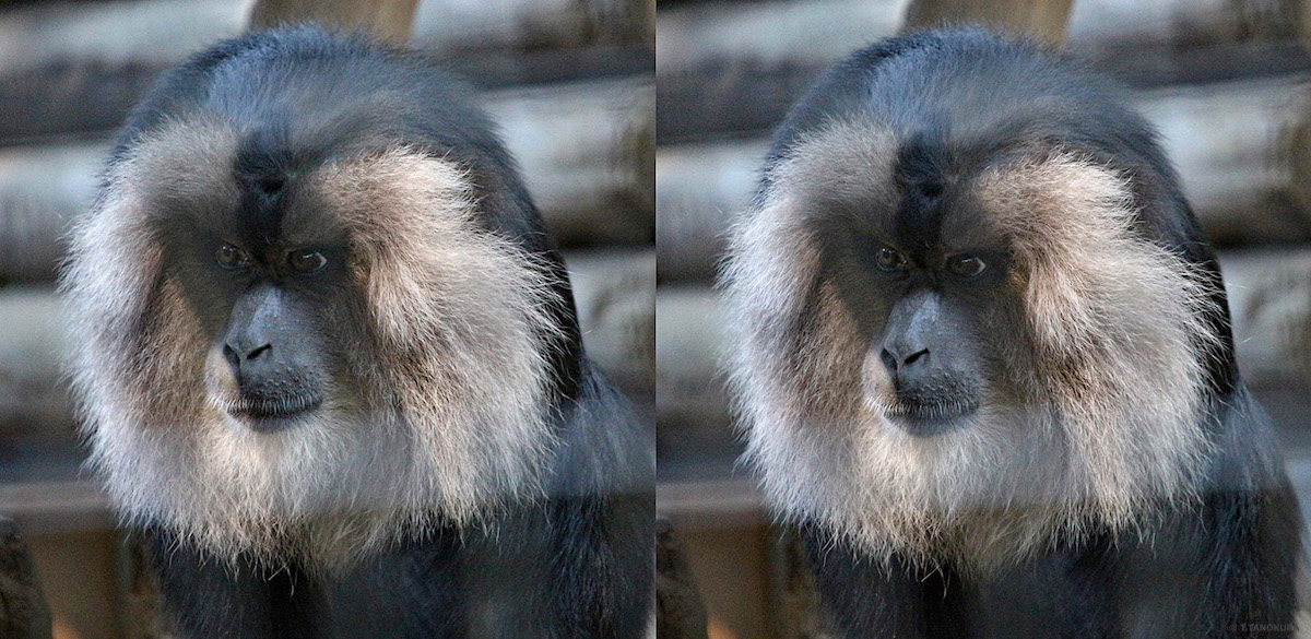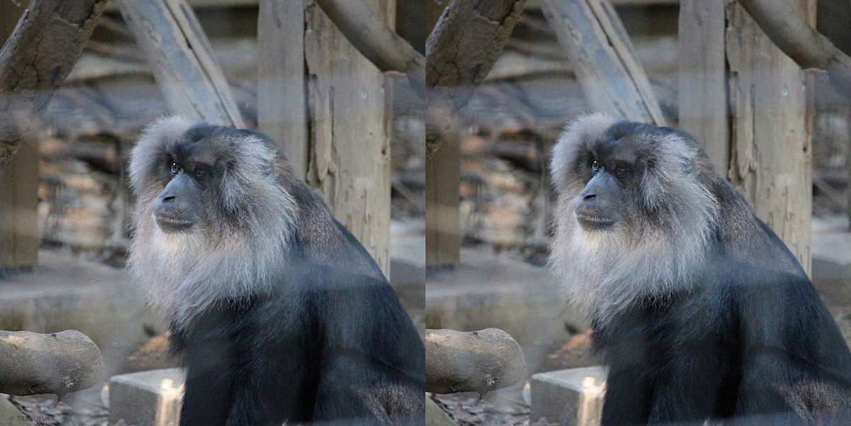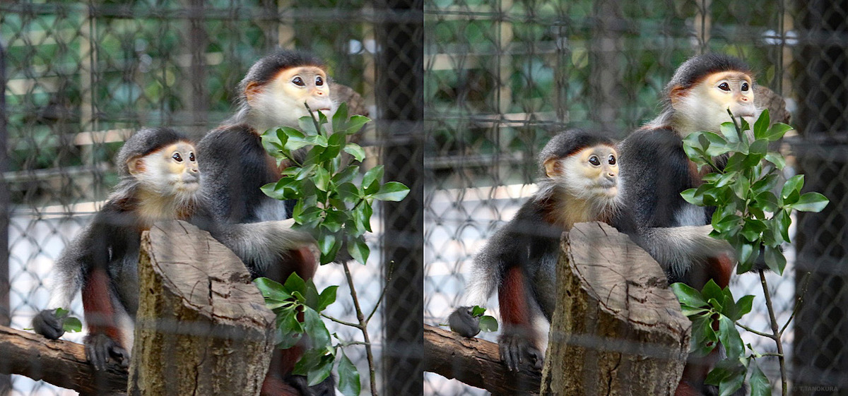 写真はいずれも、よこはま動物園 ズーラシアの「アジアの熱帯林」ゾーンで撮影しました。平行法で立体視ができます。