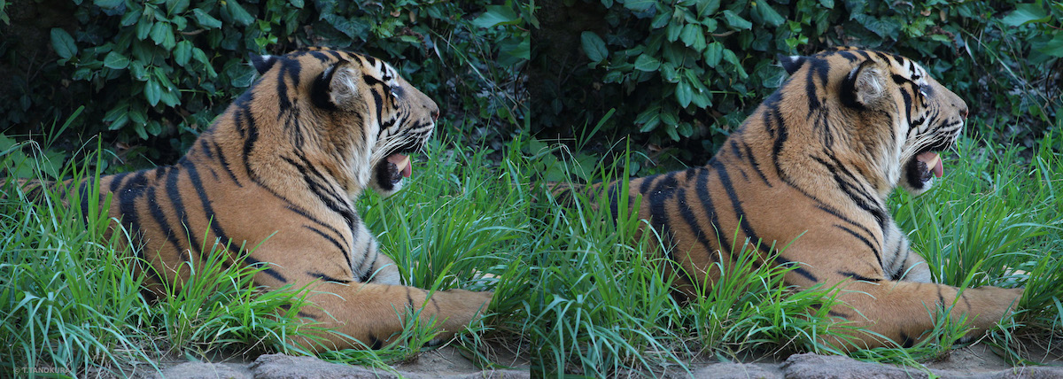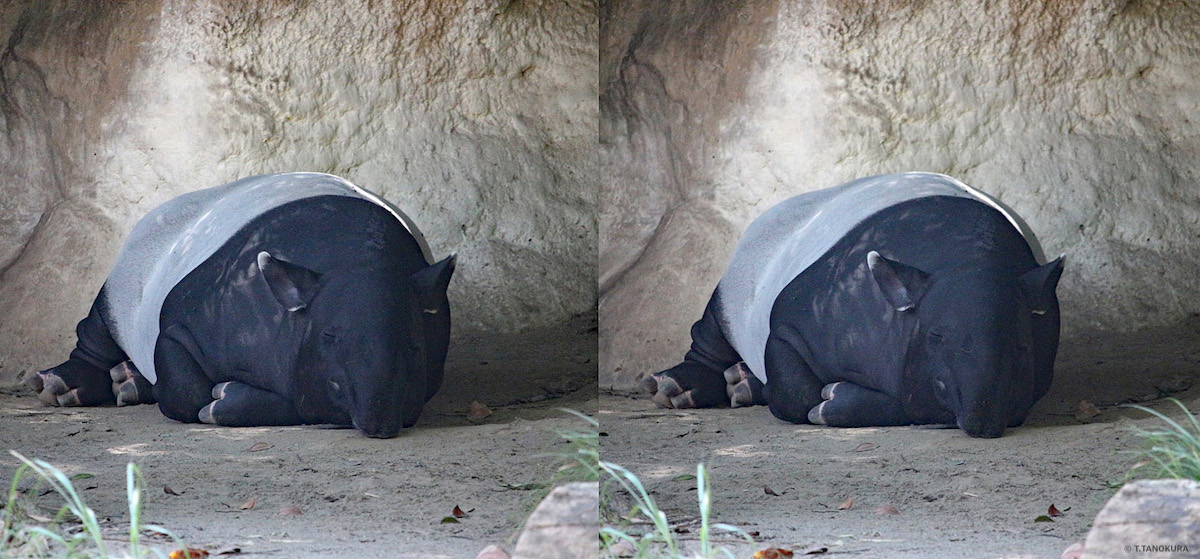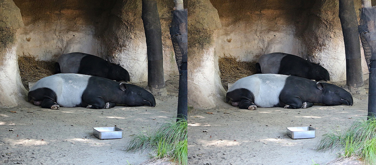 写真はいずれも、よこはま動物園 ズーラシアの「アジアの熱帯林」ゾーンで撮影しました。平行法で立体視ができます。