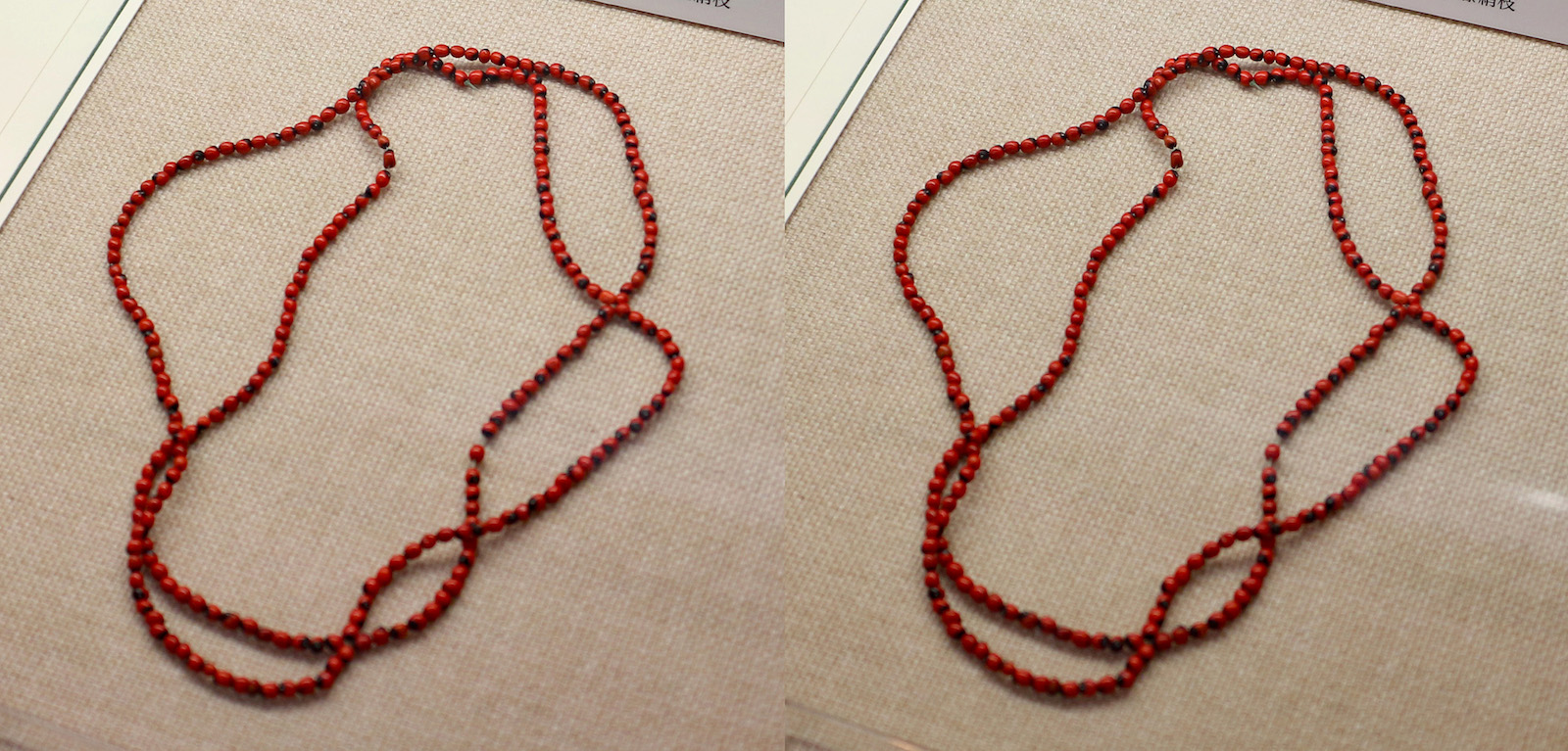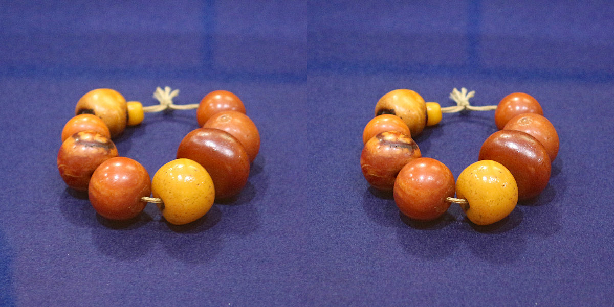 「さまざまな部材をつなげたもの」のうち、人が身につけるもの、あるいはモノをかざる目的でつくられたものを本展ではビーズとよびます。