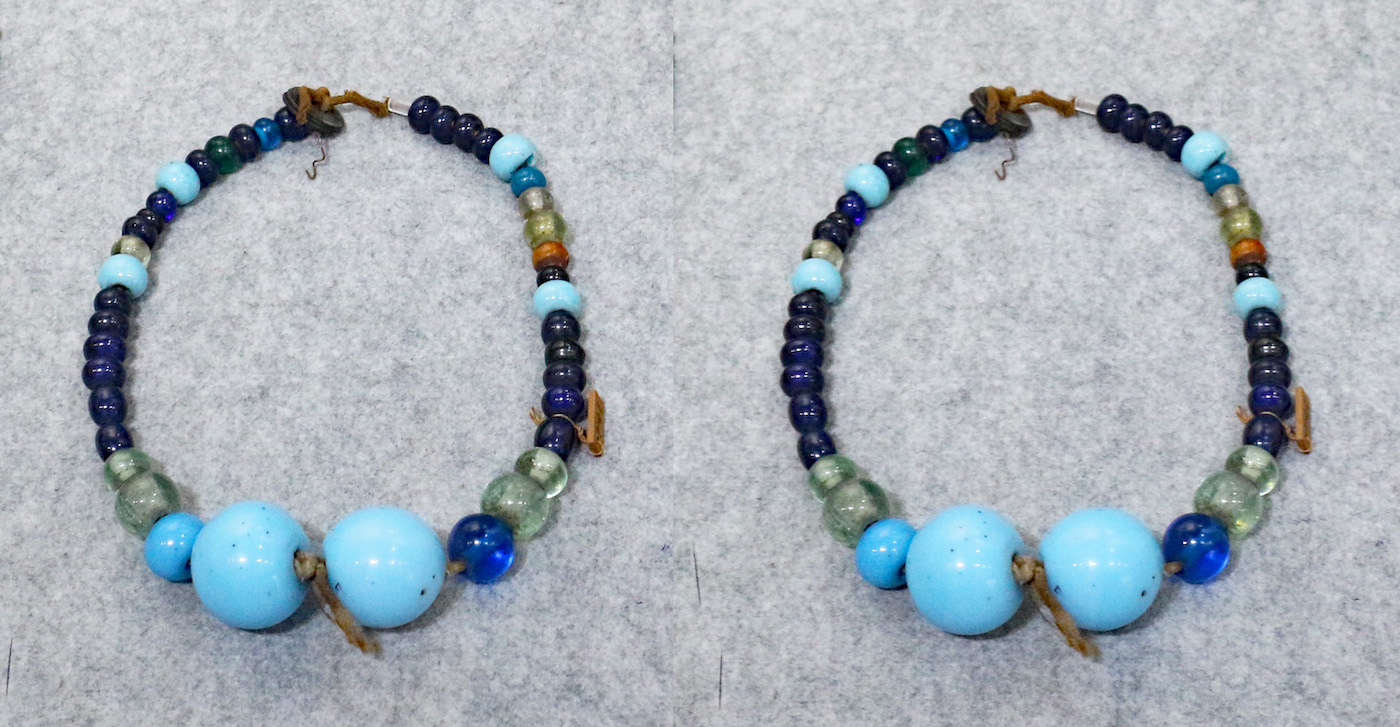ビーズは、装飾のために身につけて利用され、民族のアイデンティティを維持したり、社会的な地位をしめしたり、政治につかわれたりもしました。また邪視除けなどから信仰にもむすびつき、宗教行事の際にもなくてはならないものになりました。(図1)